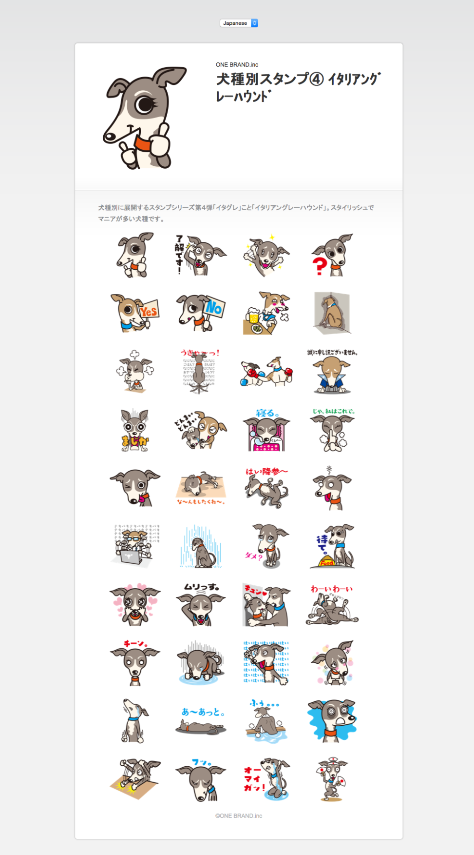 愛犬家用LINEスタンプ「イタリアングレイハウンド」