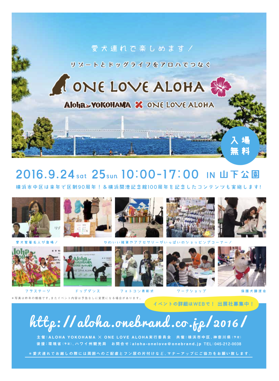 横浜で開催された愛犬家イベント「ONE LOVE ALOHA 2016」告知用A4チラシ